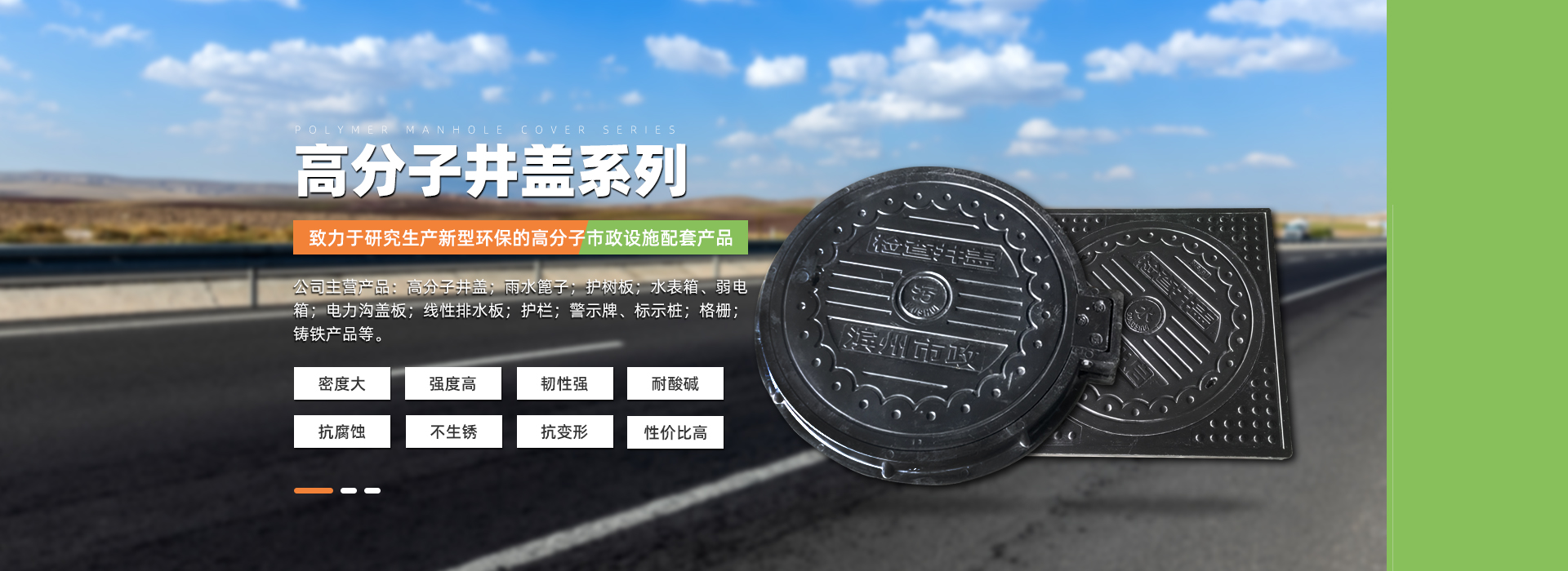 复合井盖厂家:淄博高分子制品有限公司主营高分子井盖、复合树脂井盖等产品,其位于华东地区工业重镇、齐国古都、山东省淄博市临淄区朱台镇工业园,工厂始建于2002年,于2015年公司化改制,是山东省早一批从事研究生产高分子新型材料井盖、水篦子的生产型企业,本公司依托雄厚的研究实力和密集的人才优势,一直致力于研究生产新型环保的高分子市政设施配套产品。产品以钢筋网为骨架,采用BMC/SMC高强度树脂、重钙、玻璃纤维等......