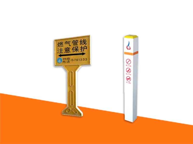 警示牌、标志桩:采用高分子材料经模压、缠绕、挤拉等成型方法经高温压一次性拉挤成型。抗冲击,耐磨损,耐高温,耐腐蚀,可以抗水、汽油、酒精、电解盐、醋酸、盐酸、钠钾化合物、尿、沥青,适合各种酸碱土壤。使用寿命长达30年。内容采用丝网印刷技术,警示效果好,不需要维护。重量轻,便于运输安装。无回收价值,自然防盗。